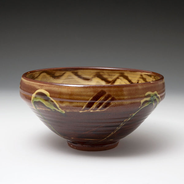 Born in Cardiff in 1943, Bowen studied painting and etching at Cardiff Art School before becoming apprenticed to Michael Leach in 1965. In 1971 he bought a property on the North Devon coast. Bowen converted the outbuildings into his workshop, and in 1976 built a double chambered wood kiln, with a capacity of over 400 cu. ft. holding over 1000 pots.