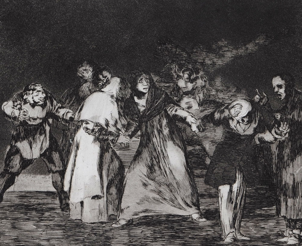 Now almost deaf, Goya’s work showed greater elements of fantasy and satirical observation. Completed in 1799, the Caprichos etchings analysed humanity’s flaws and provided the stylistic basis for his greatest and darkest work, The Disasters of War, composed during the Peninsular War. Goya later returned to Spain, but soon went into voluntary exile in Bordeaux, working until his death there in 1828.