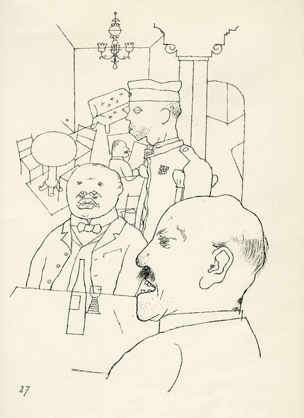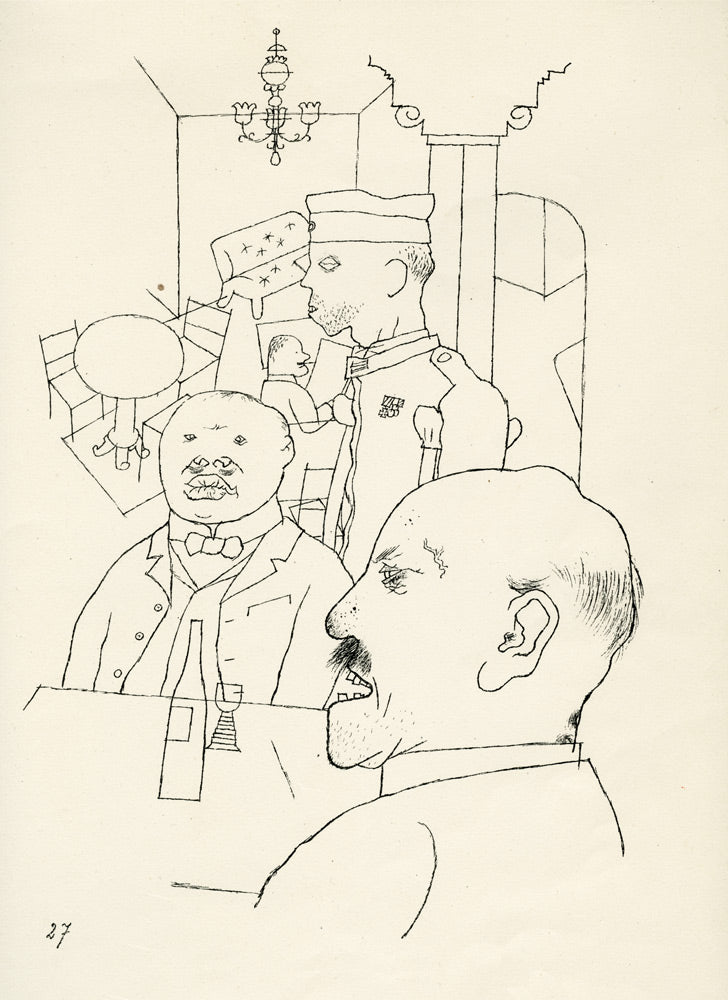Grosz’s wartime experiences deeply affected his political outlook. He began to convey his hatred of German militarism in satirical images, though his subject matter was soon noticed by the authorities: Grosz was on one occasion prosecuted for indecent representations, which offend the sense of modesty and morality of a person of normal feeling. Inevitably, Grosz was hounded by the authorities and in 1933 he fled to America to settle permanently, returning to Berlin just once before his death there in 1959.