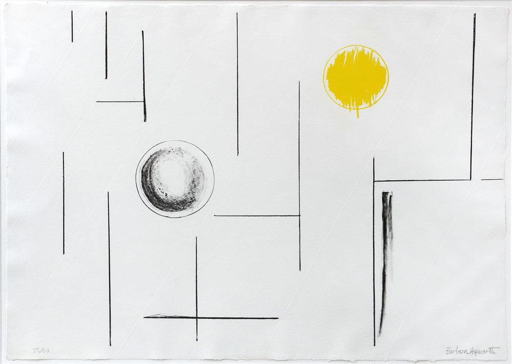 While early works were characterized by abstraction in marble or stone, time spent in St Ives led to a broader repertoire of wood and bronze, as well as figurative work closely related to that of her contemporary, Moore. Her later career also saw experimentation with lithography, producing suites with the Curwen Press in the late 1960s. Hepworth tragically died in a fire at her Trewyn studios in 1975.