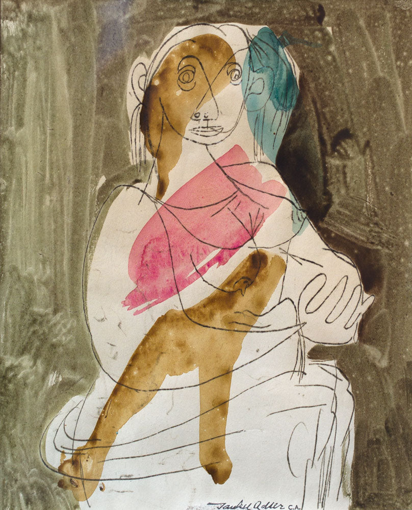 Settling in Paris, he became friendly with Picasso and Otto Dix, whose influence on his work is apparent. In 1940 Adler joined the Polish army and travelled to Glasgow where he had a great impact on the artists Robert Colquhoun and Robert MacBryde. He settled permanently in London in 1943 where he was to influence a number of young British painters including John Minton, Keith Vaughan, Prunella Clough, Michael Ayrton and the poet Dylan Thomas. Adler died prematurely, aged just 53, in 1949.