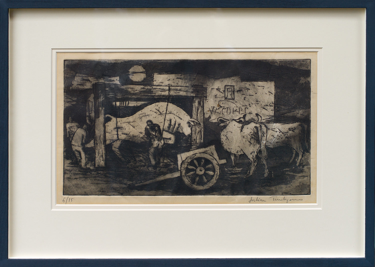 In 1935 he set up his etching studio at Durham Wharf in Hammersmith, where he remained until his death in 1988. From 1955-63, Trevelyan worked at the Royal College of Art and became Head of the Etching Department. Highly enthusiastic, he became an influential teacher, with students including David Hockney, Ron Kitaj and Norman Ackroyd.