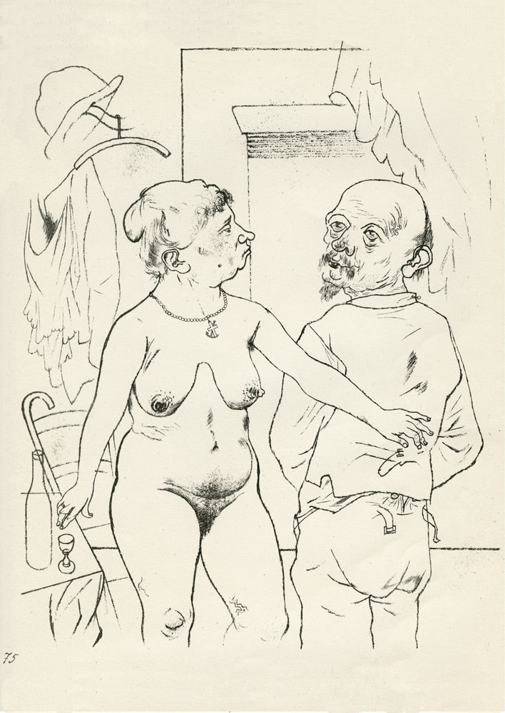 Grosz’s wartime experiences deeply affected his political outlook. He began to convey his hatred of German militarism in satirical images, though his subject matter was soon noticed by the authorities: Grosz was on one occasion prosecuted for indecent representations, which offend the sense of modesty and morality of a person of normal feeling. Inevitably, Grosz was hounded by the authorities and in 1933 he fled to America to settle permanently, returning to Berlin just once before his death there in 1959.