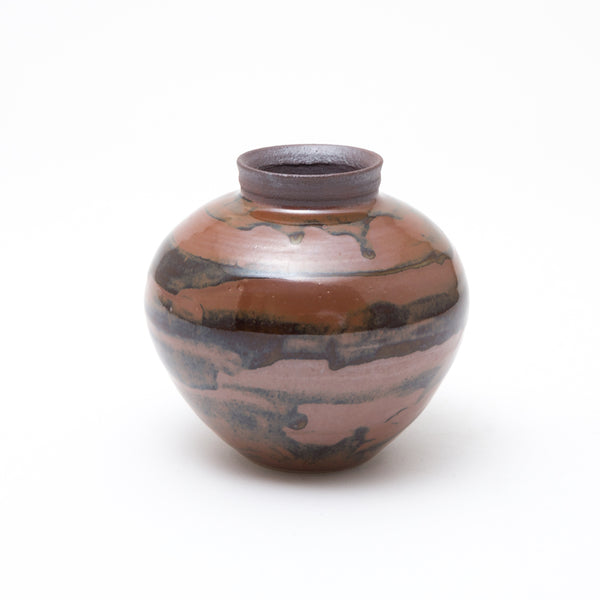 Dots and lines find a natural rhythm on guinomi and small vases, while the lustrous surfaces of persimmon platters are softened by mossy Yōhen ash.
