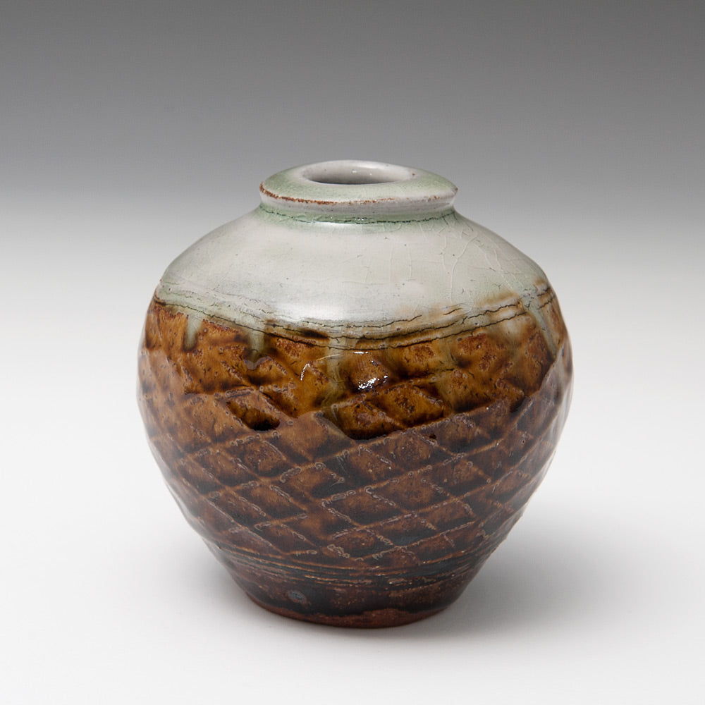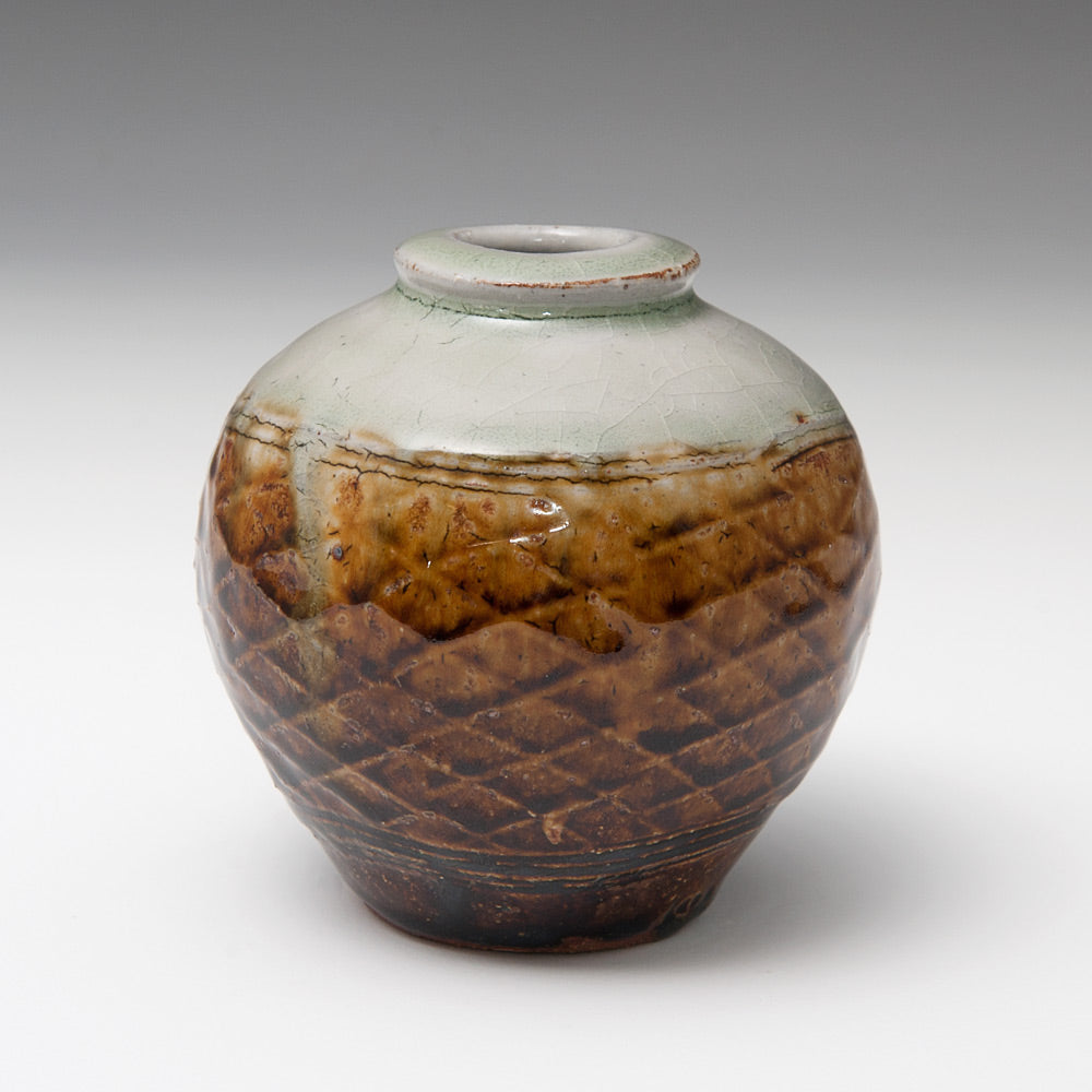 Phil Rogers was born in Newport, Gwent in 1951. He attended Newport and Swansea Colleges of Art and had originally intended to become a painter. While still at college in the early 1970s Rogers and a friend taught themselves to throw. Their only guidance came from Bernard Leach’s A Potter’s Book and their throwing practice came in the form of competitions to see who could produce the biggest pot.