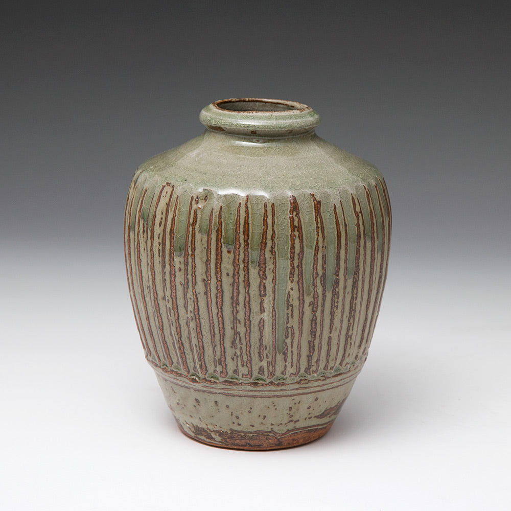Mike Dodd was born in 1943 in Sutton, Surrey. While in the village of Corfe Castle, on his way to a teashop with his parents, the young Dodd spotted a potter at work. He stopped, mesmerised by what he saw. The image of that potter burnt itself into his mind, and according to his mother’s later account he bored them rigid, talking excitedly about everything this white coated magician had done.