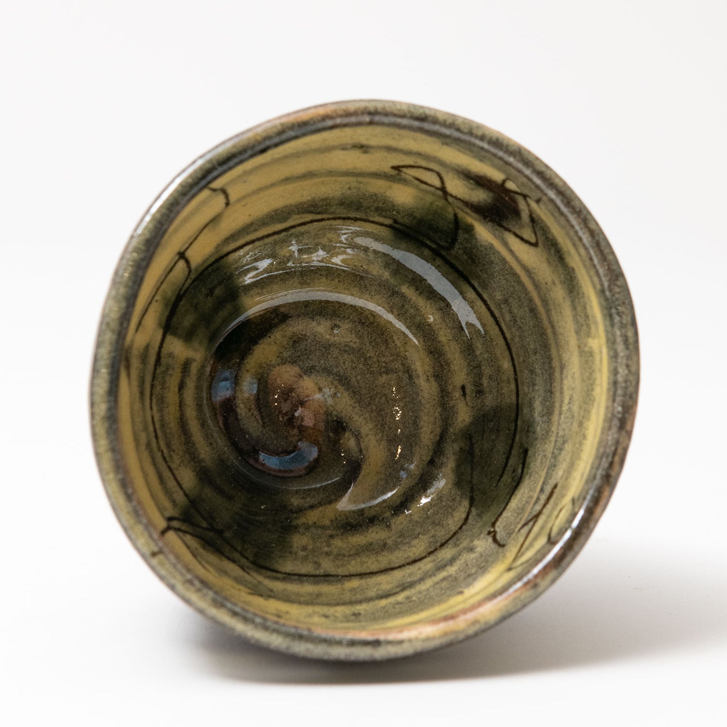 • Yellow & brown with sgraffito • Signed • 9.5cm x 13.0cm