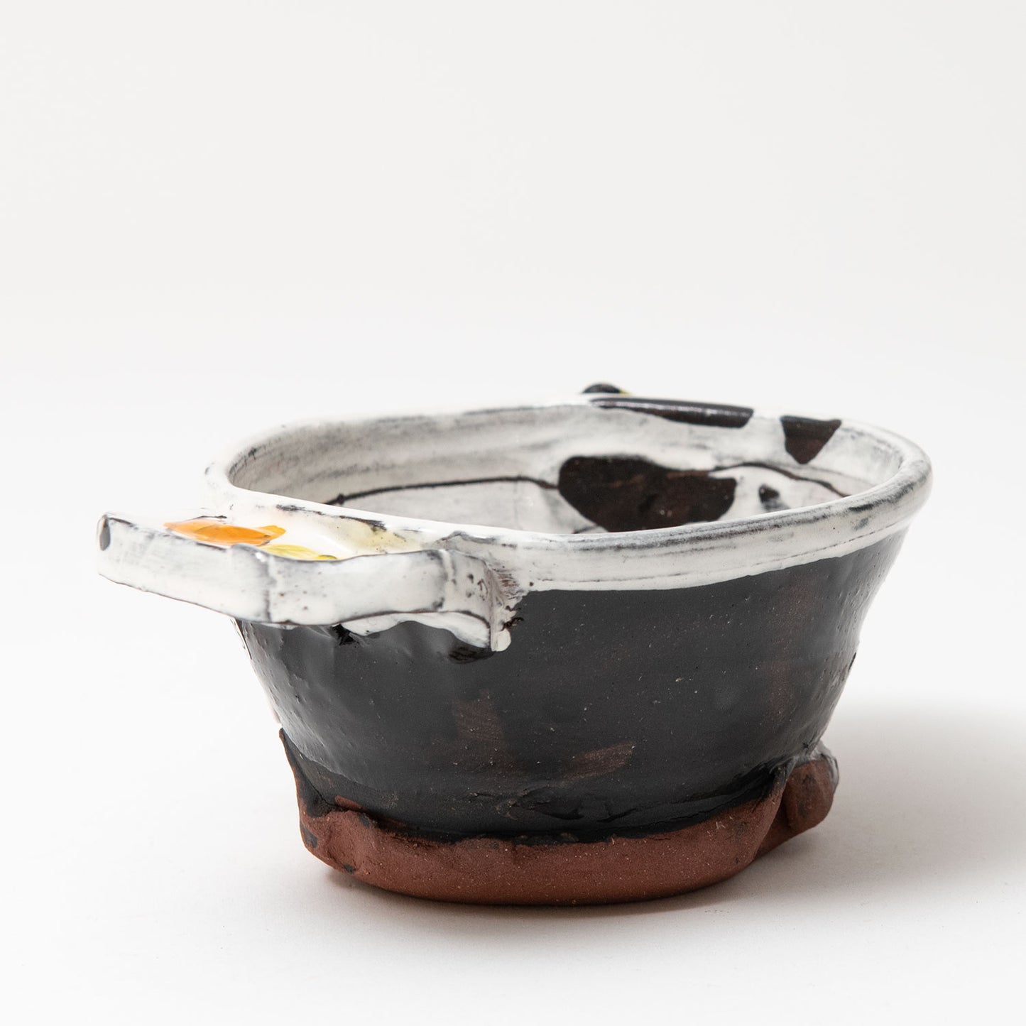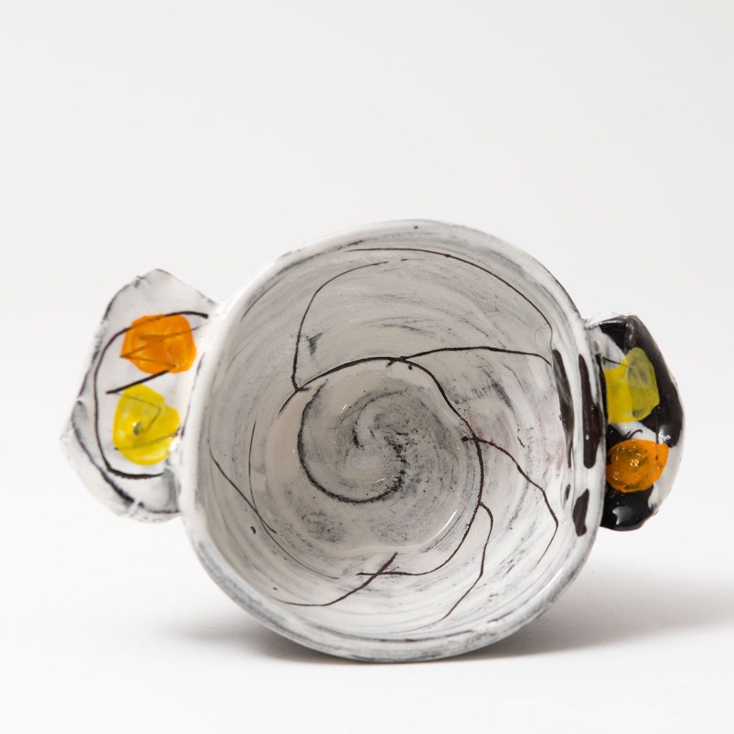 White with orange & yellow spots & sgraffito
