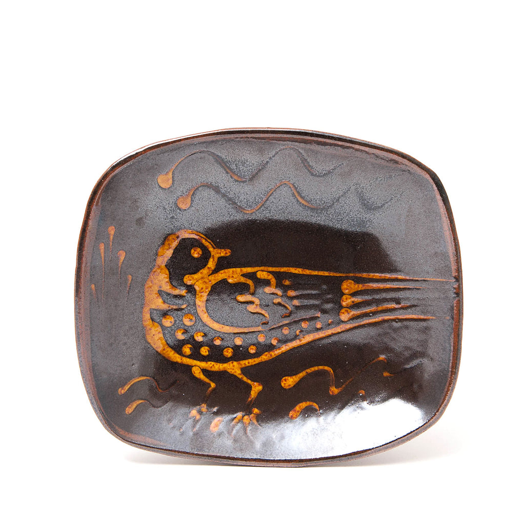 Fitch draws influence from the work of the medieval potters of England and the subsequent tradition of slip decorated country pottery, that was prevalent in this country until the early twentieth century. The slipware platters on offer here are made using the moulds originally used by the great Michael Cardew at Wenford Bridge Pottery.