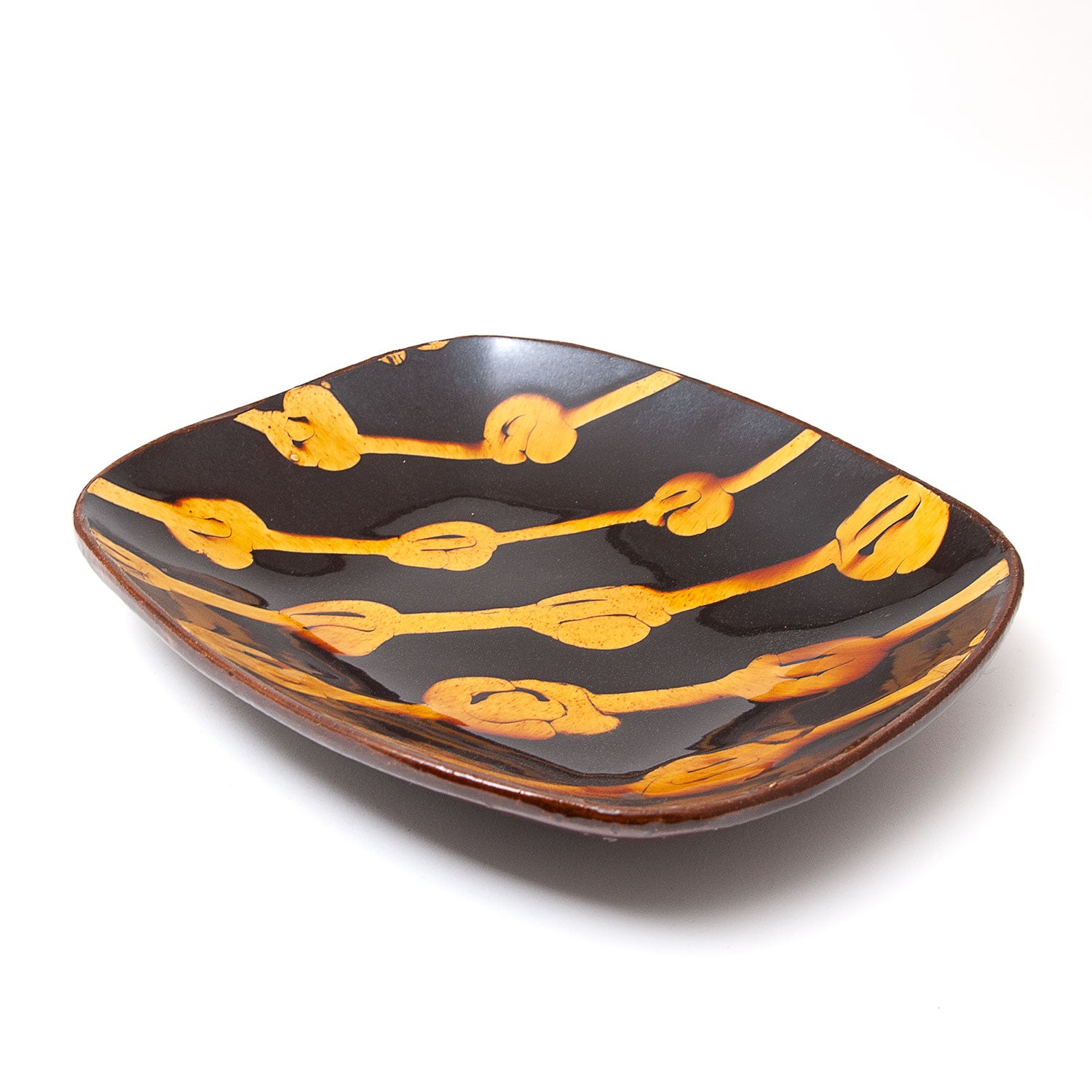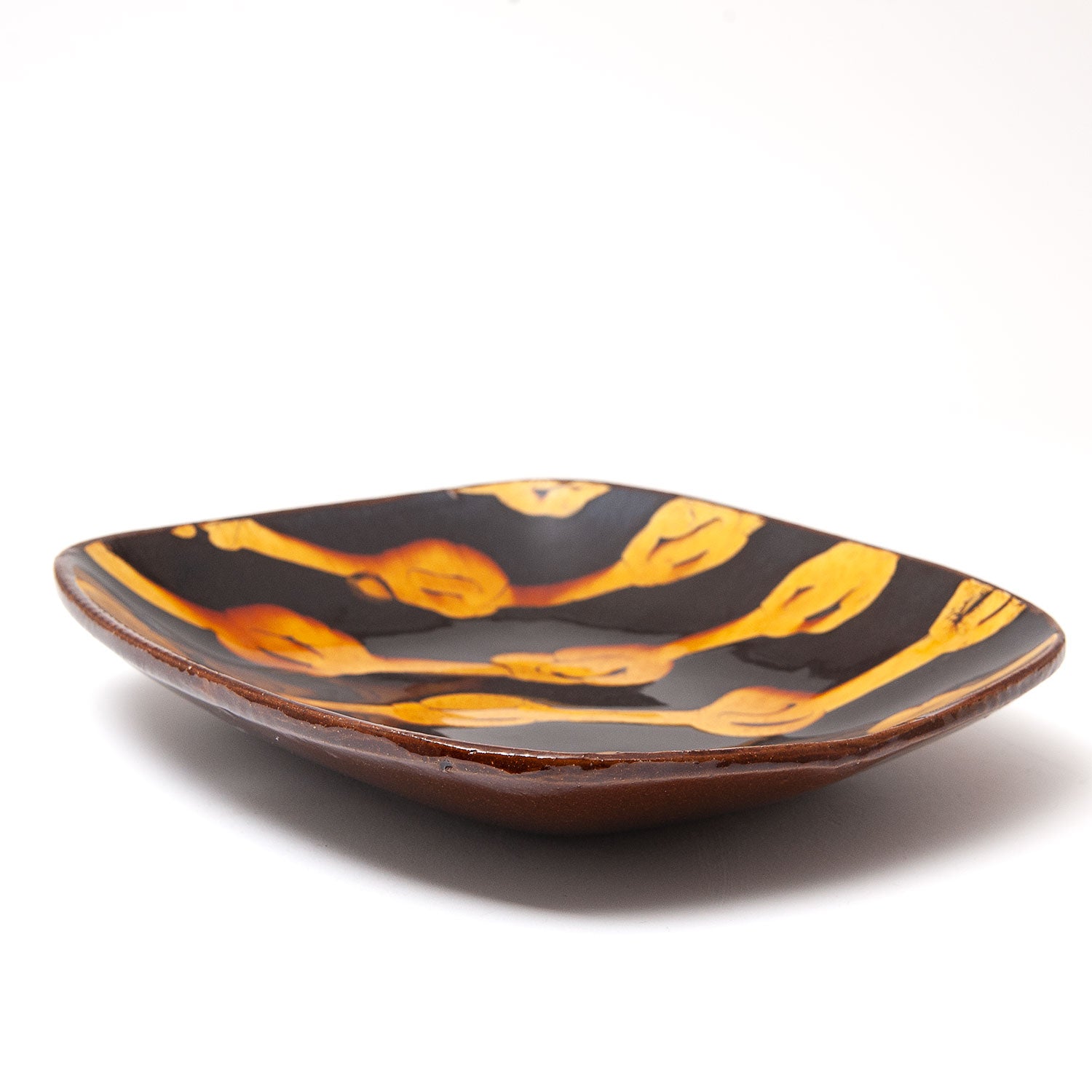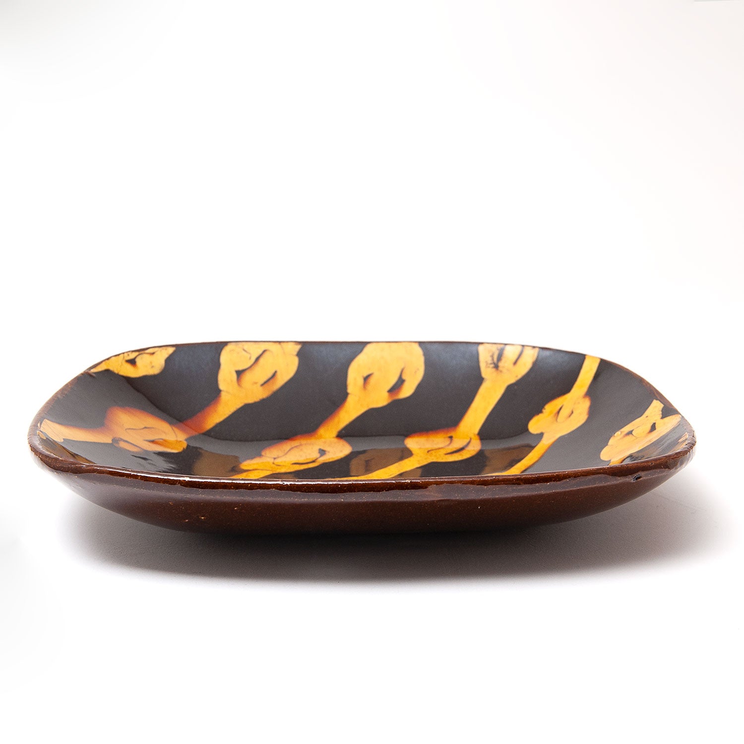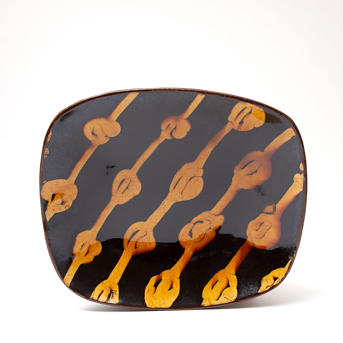 Fitch draws influence from the work of the medieval potters of England and the subsequent tradition of slip decorated country pottery, that was prevalent in this country until the early twentieth century. The slipware platters on offer here are made using the moulds originally used by the great Michael Cardew at Wenford Bridge Pottery.