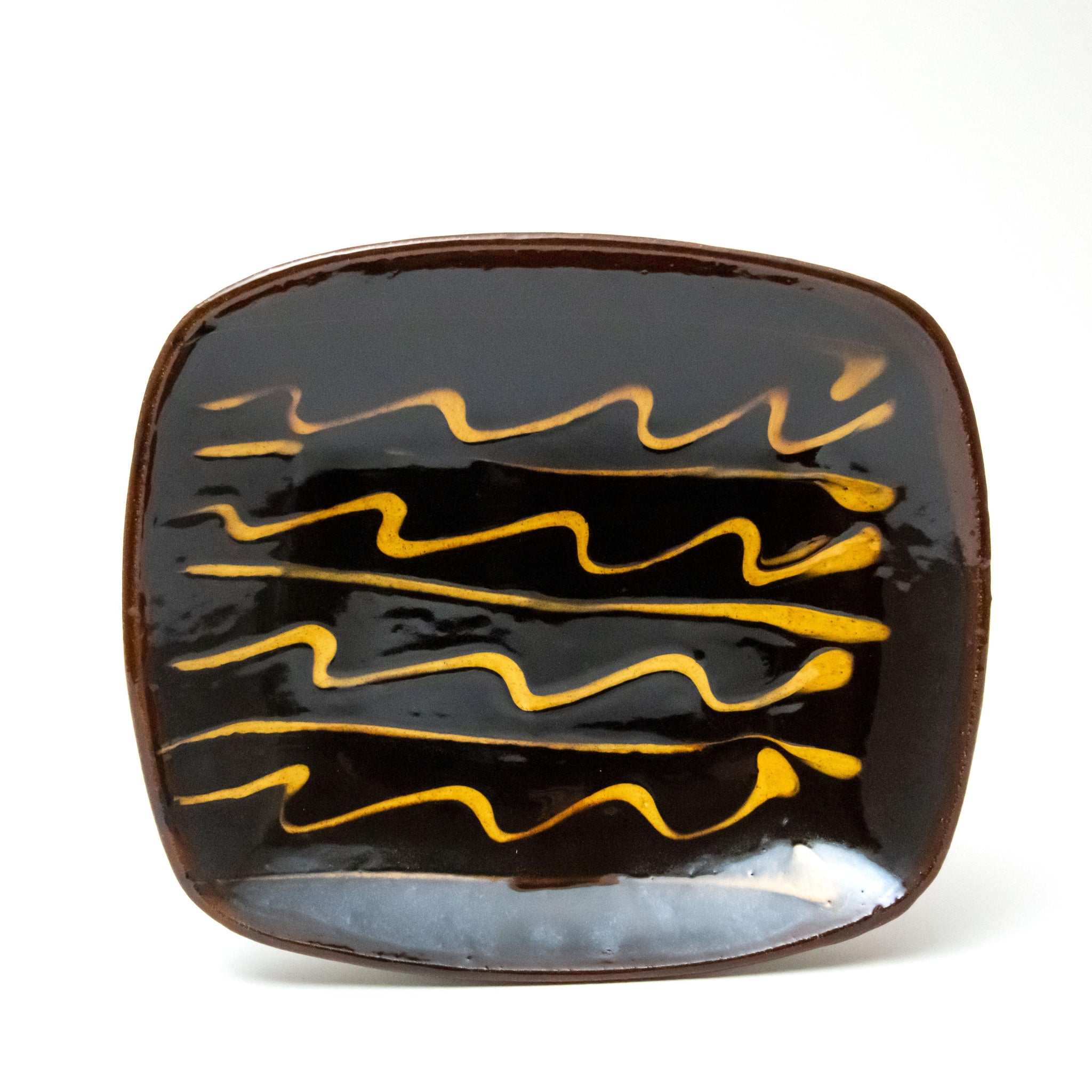 Fitch draws influence from the work of the medieval potters of England and the subsequent tradition of slip decorated country pottery, that was prevalent in this country until the early twentieth century. The slipware platters on offer here are made using the moulds originally used by the great Michael Cardew at Wenford Bridge Pottery.