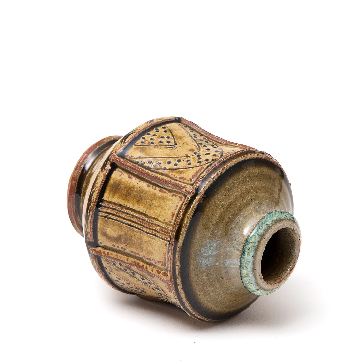 Mike Dodd was born in 1943 in Sutton, Surrey. While in the village of Corfe Castle, on his way to a teashop with his parents, the young Dodd spotted a potter at work. He stopped, mesmerised by what he saw. The image of that potter burnt itself into his mind, and according to his mother’s later account he bored them rigid, talking excitedly about everything this white coated magician had done.