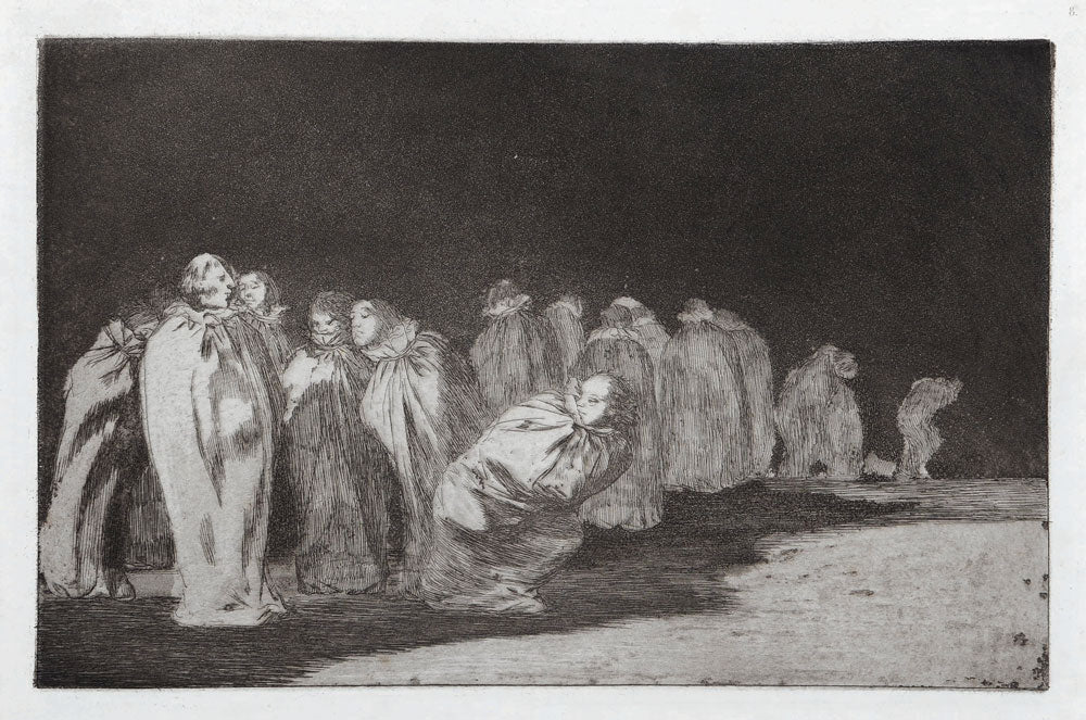 Now almost deaf, Goya’s work showed greater elements of fantasy and satirical observation. Completed in 1799, the Caprichos etchings analysed humanity’s flaws and provided the stylistic basis for his greatest and darkest work, The Disasters of War, composed during the Peninsular War. Goya later returned to Spain, but soon went into voluntary exile in Bordeaux, working until his death there in 1828.