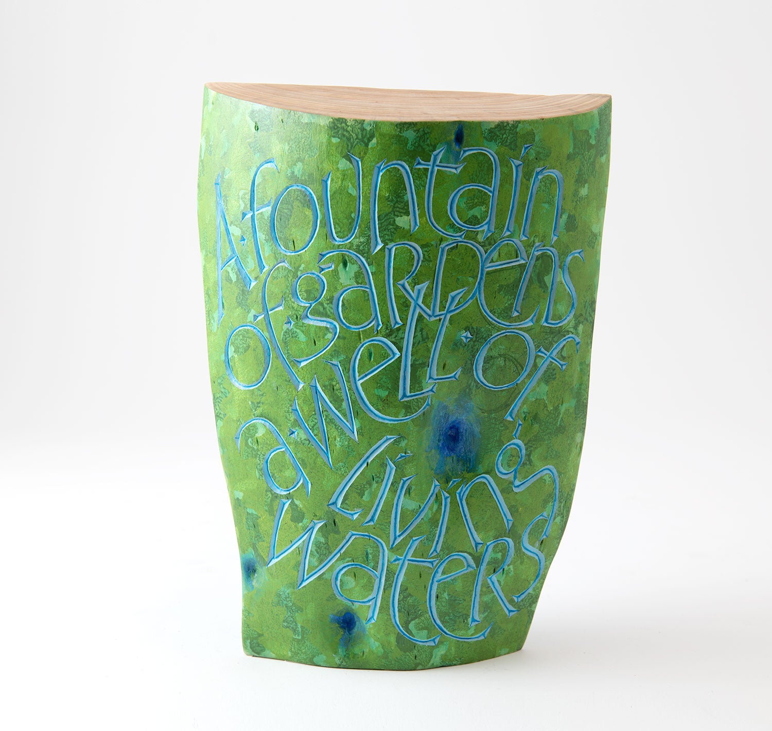 The words are from the Bible (King James Version) Song of Songs 4, 15. A free copy of Martin Wenham’s new book Martin Wenham The Art of Letter Carving, published by Crowood Press (price £25), will accompany each purchase from the exhibition.