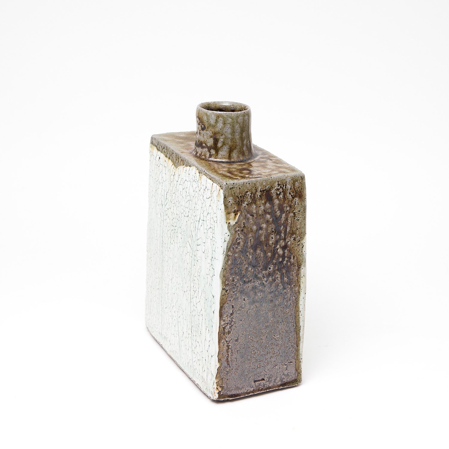 Anne Mette has built three large kilns in her native Denmark, the latest a two chamber wood firing kiln built in September 2011 at her ramshackle farmhouse on the west coast of Bornholm. Though all her pots exhibit her desire to challenge herself in glaze and form, her slab bottles are certainly Anne Mette’s tour de force. Her pottery combines beautiful aesthetics with a function befitting the hardiest domestic ware.