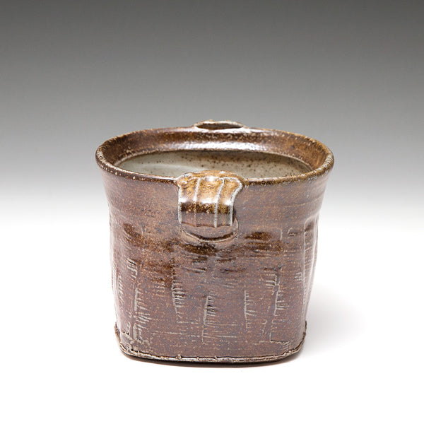 Anne Mette has built three large kilns in her native Denmark, the latest a two chamber wood firing kiln built in September 2011 at her ramshackle farmhouse on the west coast of Bornholm. Though all her pots exhibit her desire to challenge herself in glaze and form, her slab bottles are certainly Anne Mette’s tour de force. Her pottery combines beautiful aesthetics with a function befitting the hardiest domestic ware.