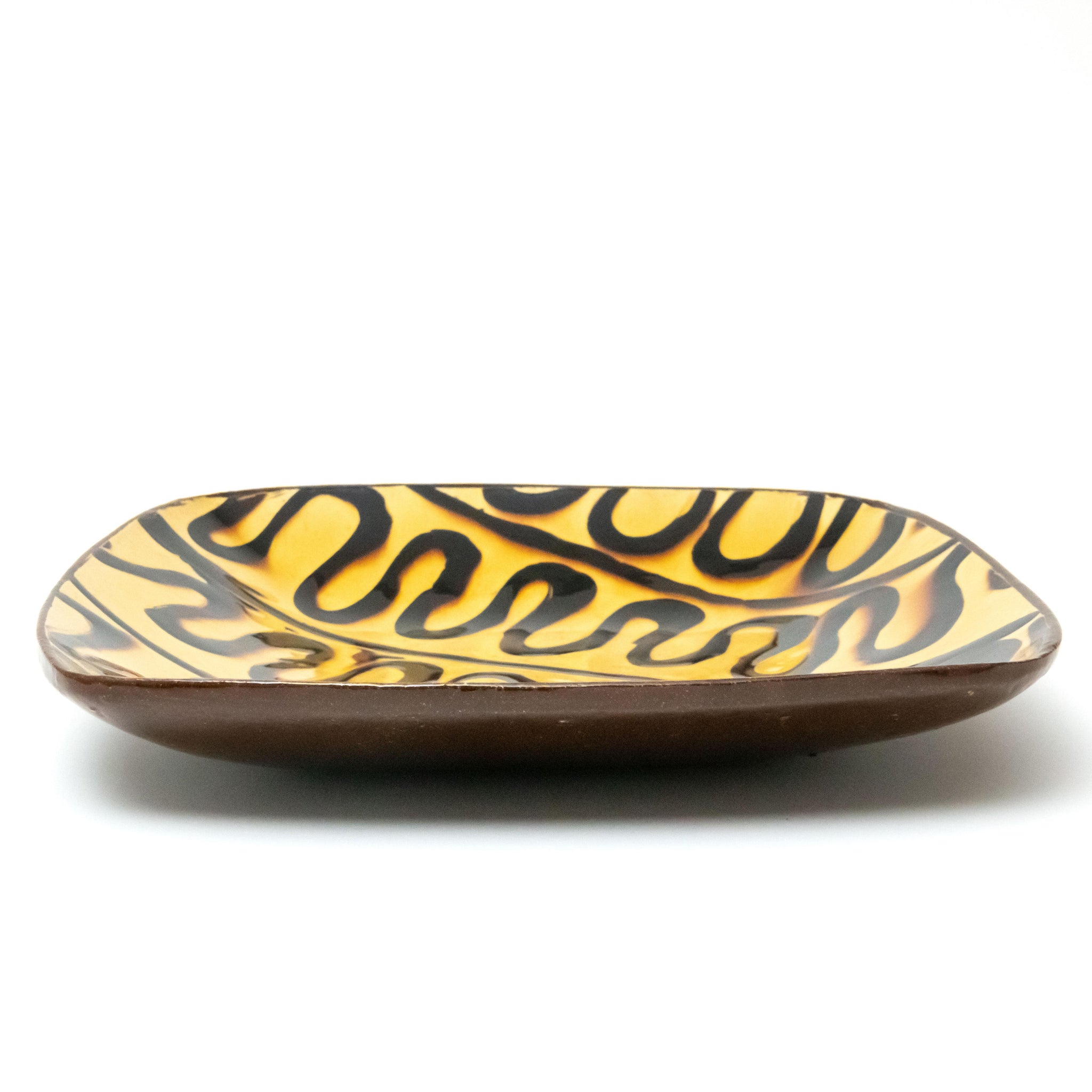 Fitch draws influence from the work of the medieval potters of England and the subsequent tradition of slip decorated country pottery, that was prevalent in this country until the early twentieth century. The slipware platters on offer here are made using the moulds originally used by the great Michael Cardew at Wenford Bridge Pottery.