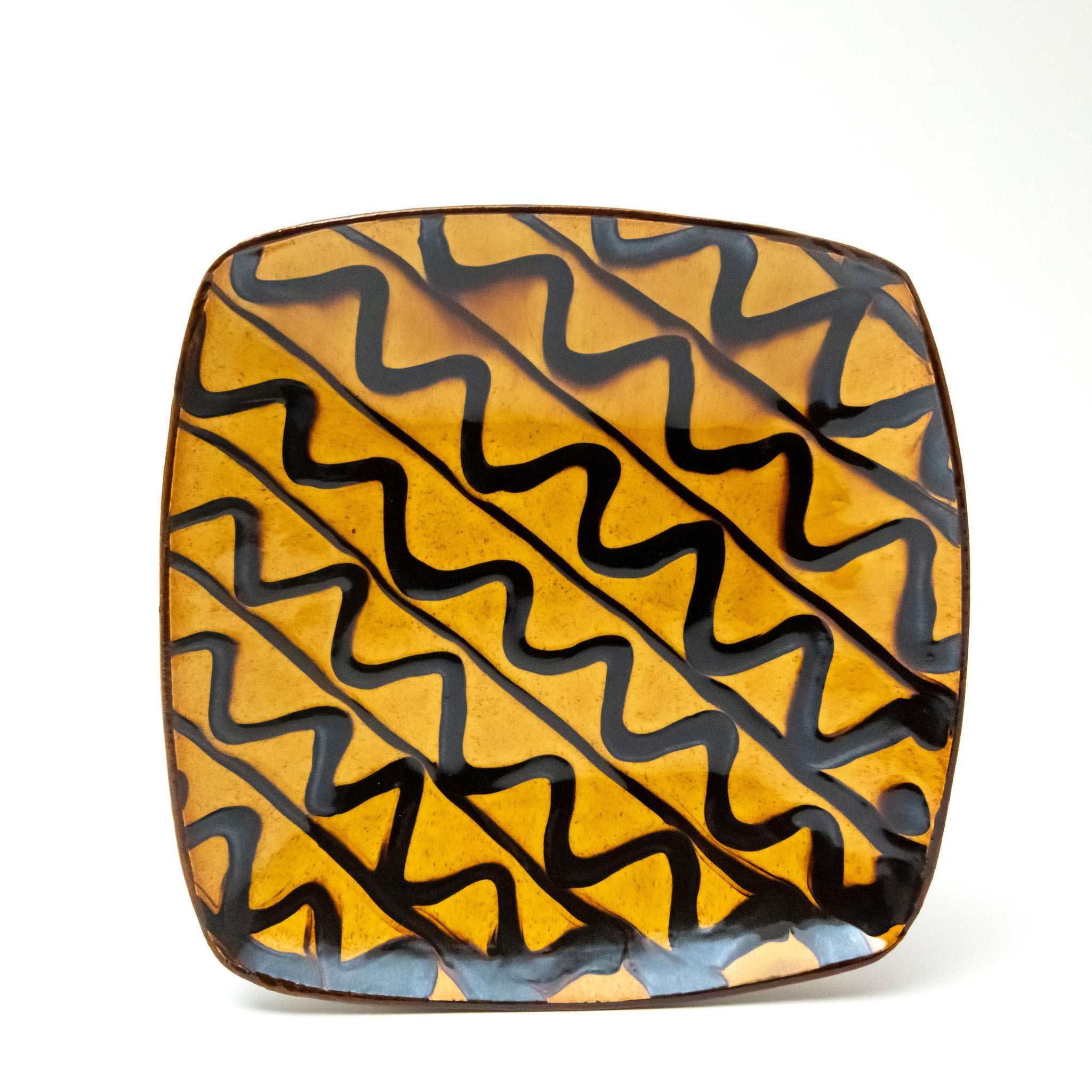 Fitch draws influence from the work of the medieval potters of England and the subsequent tradition of slip decorated country pottery, that was prevalent in this country until the early twentieth century. The slipware platters on offer here are made using the moulds originally used by the great Michael Cardew at Wenford Bridge Pottery.