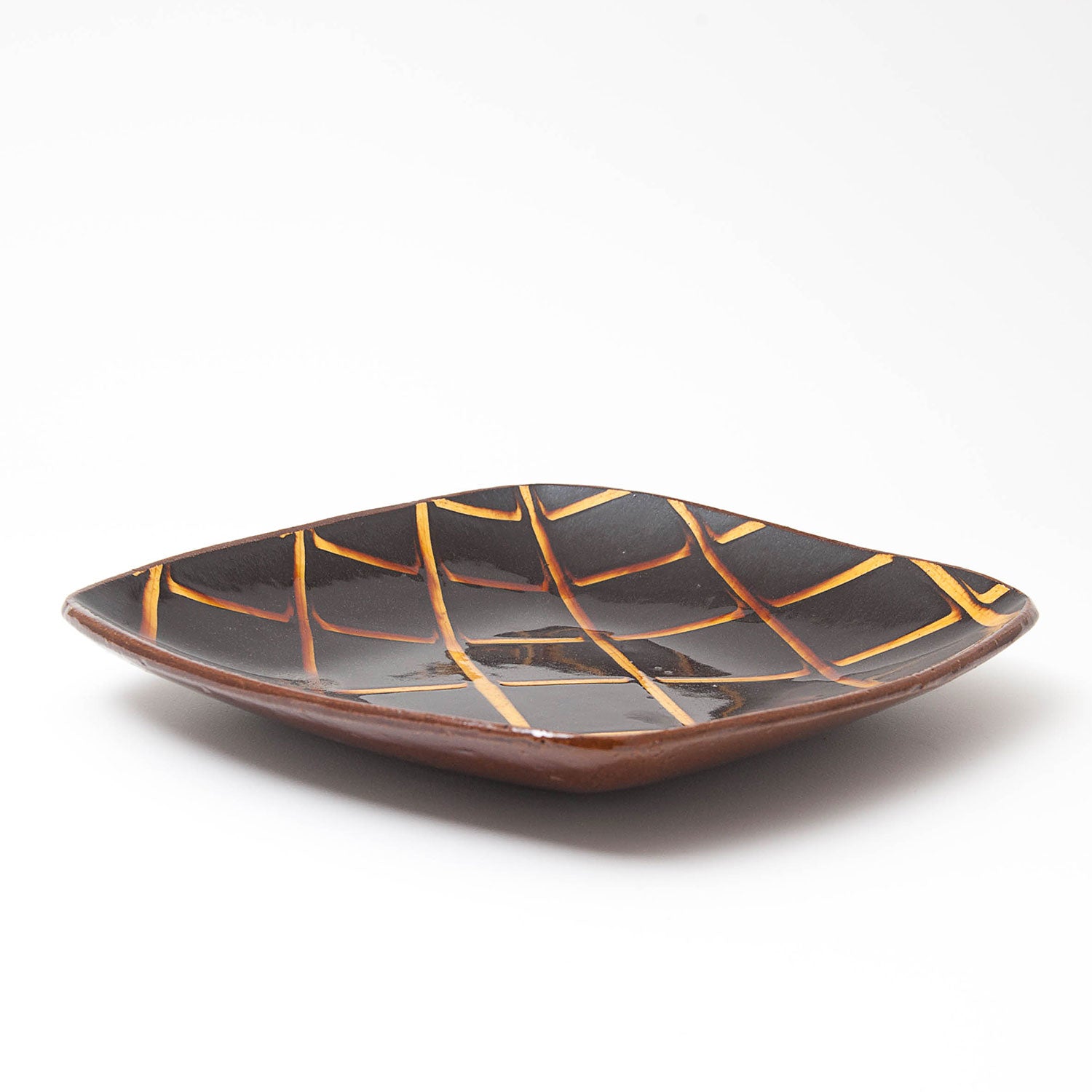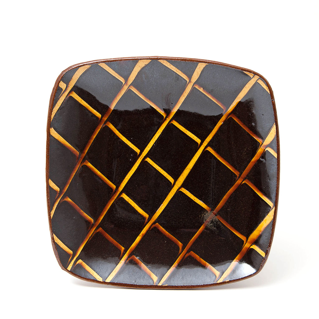 Fitch draws influence from the work of the medieval potters of England and the subsequent tradition of slip decorated country pottery, that was prevalent in this country until the early twentieth century. The slipware platters on offer here are made using the moulds originally used by the great Michael Cardew at Wenford Bridge Pottery.