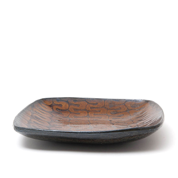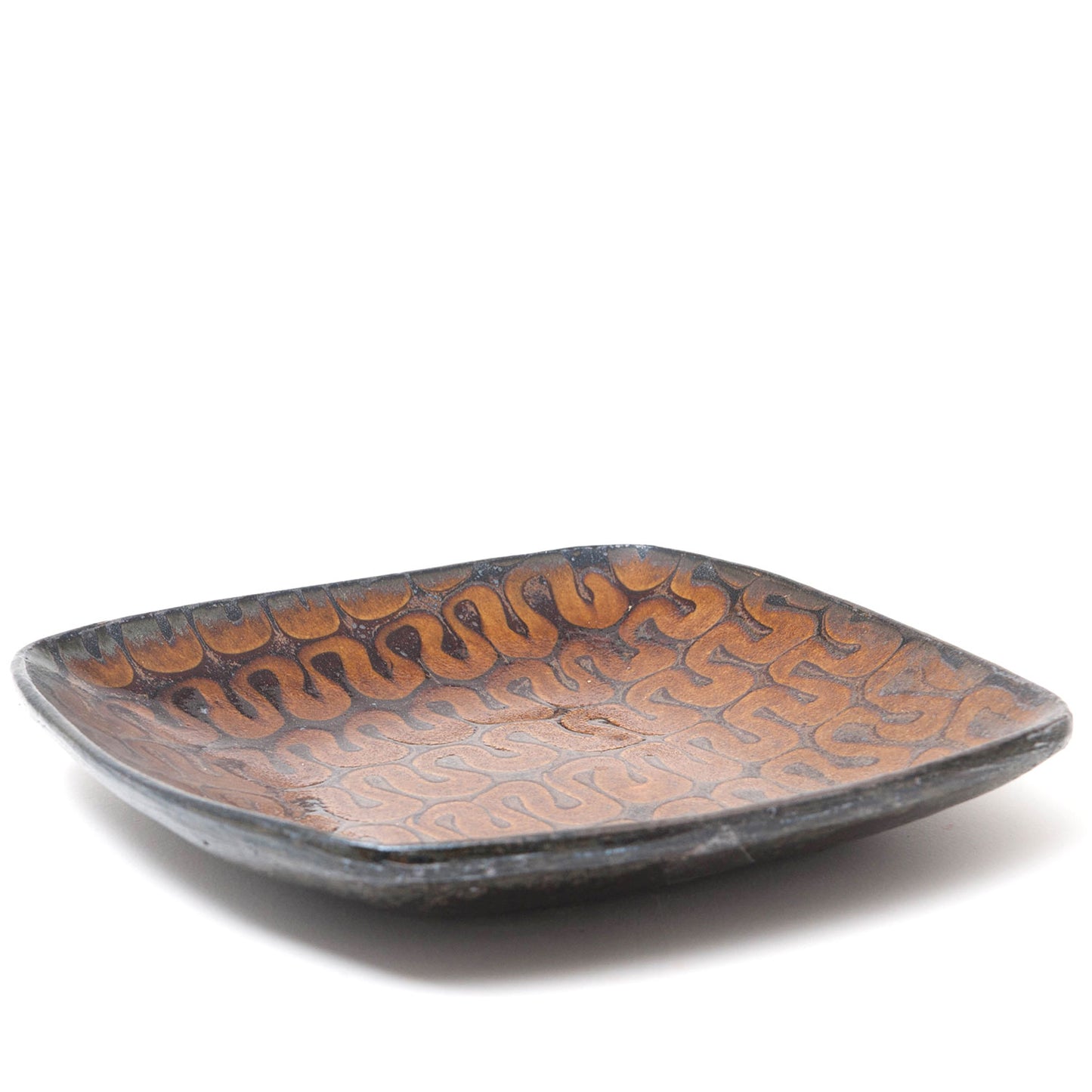 Fitch draws influence from the work of the medieval potters of England and the subsequent tradition of slip decorated country pottery, that was prevalent in this country until the early twentieth century. The slipware platters on offer here are made using the moulds originally used by the great Michael Cardew at Wenford Bridge Pottery.