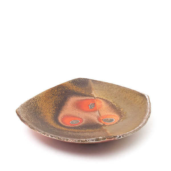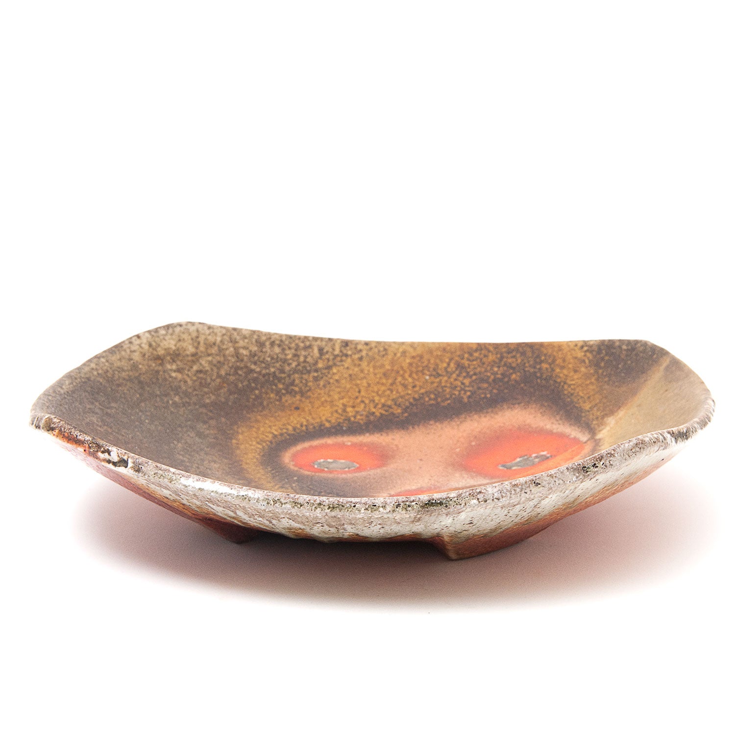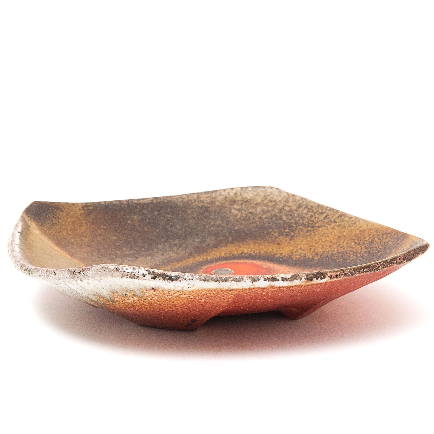 Natural ash glaze occurs in a wood fired kiln when ash particles carried around the kiln by the hot air and flames land and melt on the pots, often creating dramatic colour variations on their surfaces depending on their position in the kiln.