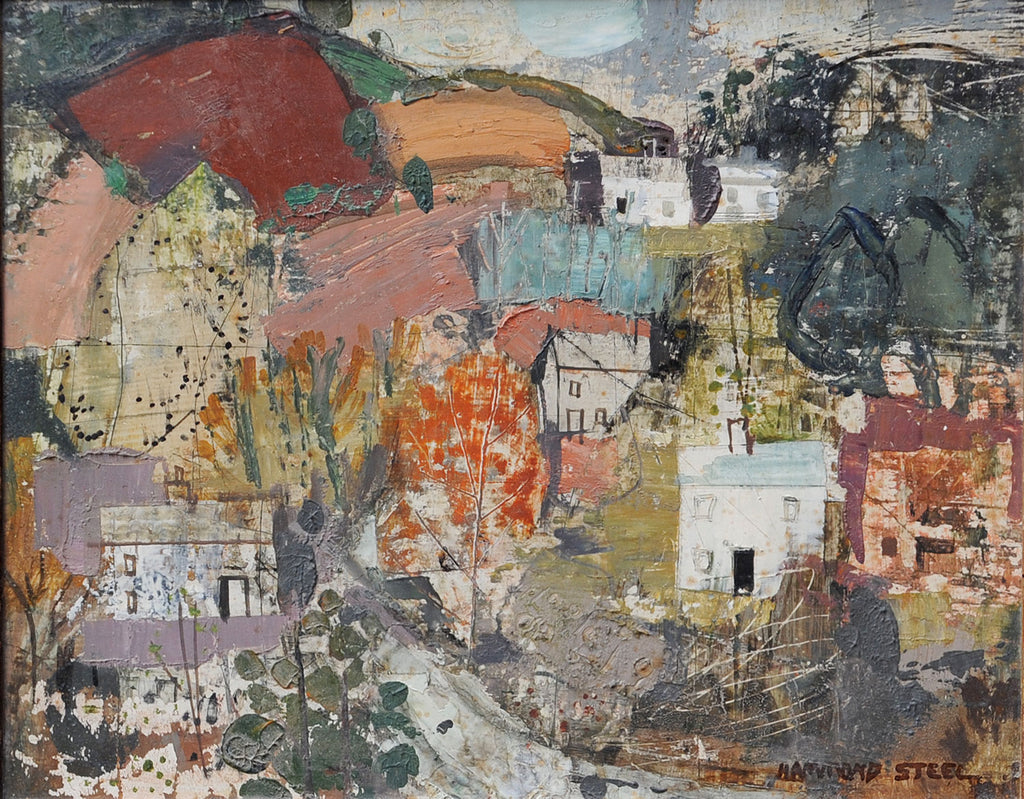 His work was exhibited widely; at the RA (where he had 15 submissions from 1926), RBA, RI, RWA, Leicester Galleries, Glasgow Institute (7 works) and Paris Salon. Steel had his first one-man exhibition at the Graves Gallery in 1941. His work has been bought by a number of provincial galleries, including Sheffield and is represented in several Public Collections.