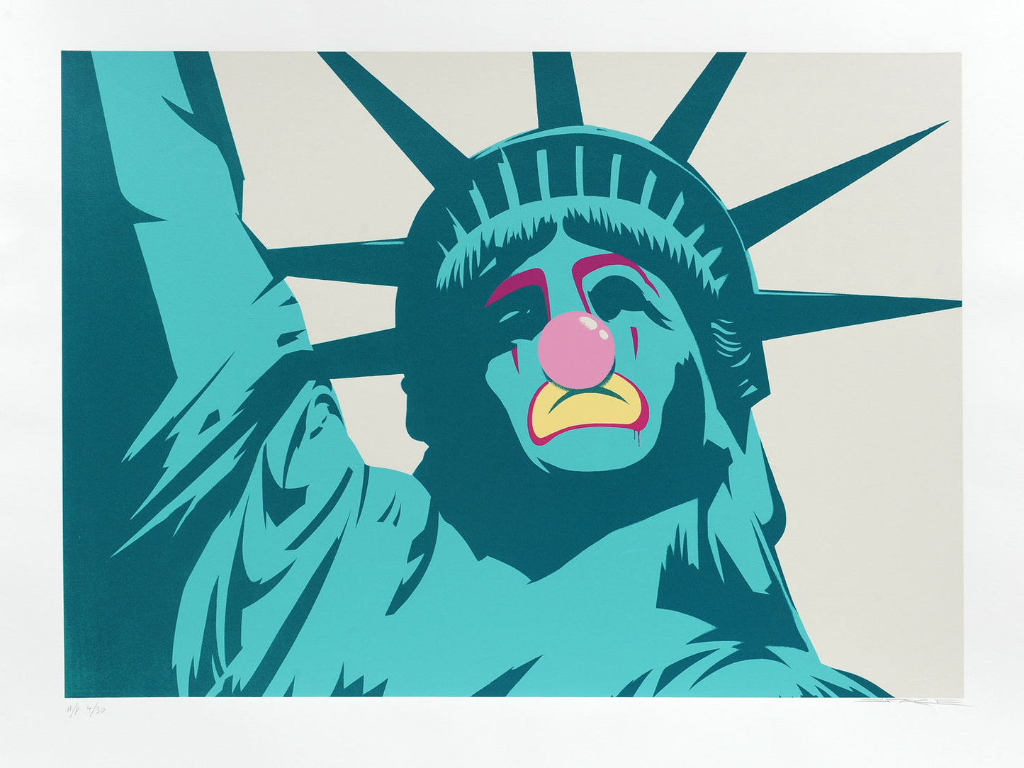 Growing up in London, D*Face had a childhood interest in graffiti, and as a teenager was drawn to the street culture and imagery of skateboarding. He held his first major London solo exhibition at the Stolenspace gallery, which sold out in October 2006. An associate of Banksy, he has also shown works at the world famous Santa’s Ghetto and his solo show Eyecons (Brighton 2007) was, again, a sell-out show.