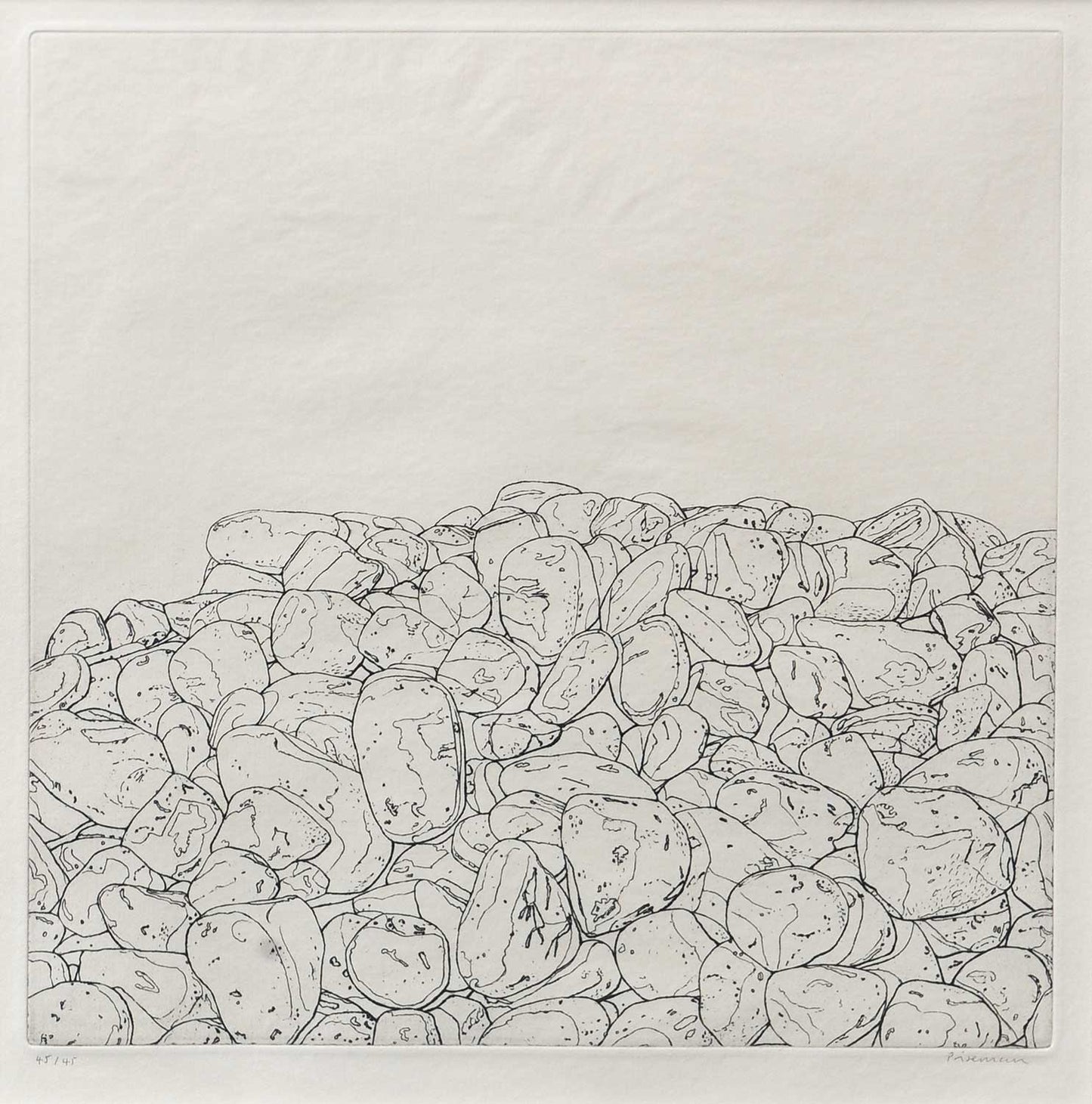 Stoning displays a pile of randomly arranged stones and is based on an anonymous photograph.