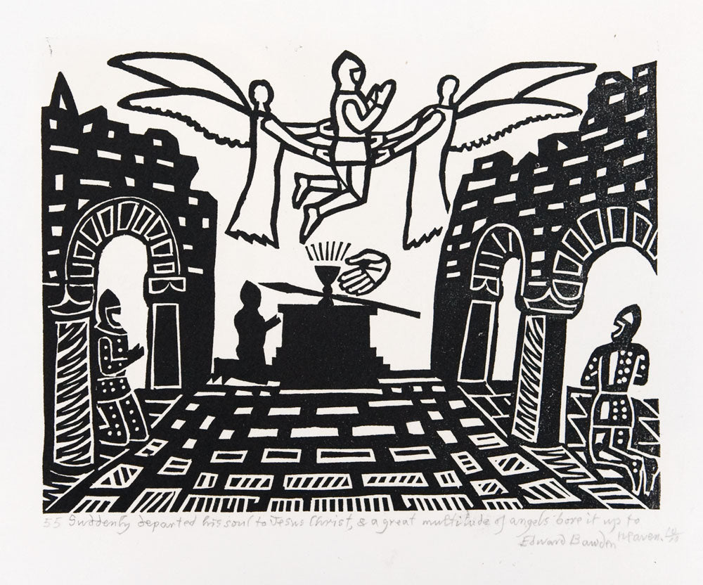 Producing work for London Transport, he was made an Official War Artist in 1940. After the war, he consolidated his artistic reputation with a large body of prints, illustrations, posters, catalogues and murals and attained full RA status in 1957. After a decline in popularity, in 1989 Bawden was accorded a major retrospective at the V. and A. Museum. Though too ill to attend, he died a happy man later that same year.