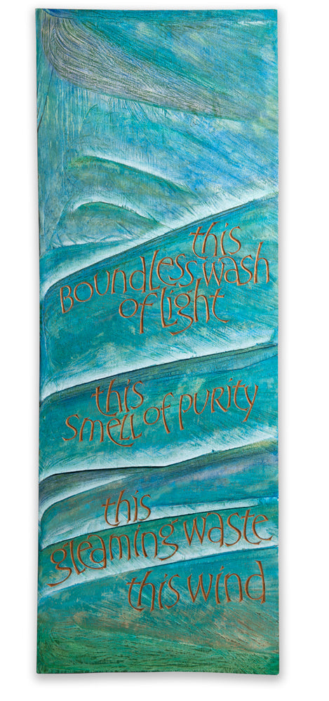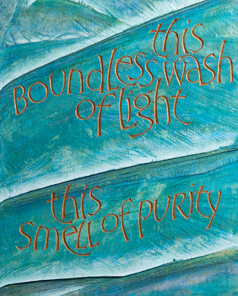 After a year Wenham left research and for the next 23 years taught in secondary, primary and special schools, with 9 years’ lecturing at the University of Leicester. He first exhibited his letter-cutting work in 1982; since 1984 it has been shown in the major British exhibitions of lettering arts. Wenham’s work is held in the Crafts Council’s Permanent Collection and in private collections in Britain, the USA, Germany, Japan and Puerto Rico.