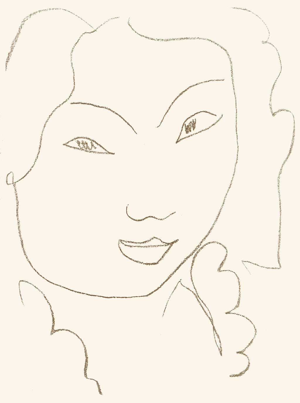 In 1945, following the success of his series of lithographs under the titles Visages, inspired by Reverdy's poetry, Matisse began working with several exotic models, mostly Polynesian, to prepare illustrations for an ambitious suite of lithographs that he hoped to do in homage to his friend, the poet John-Antoine Nau.