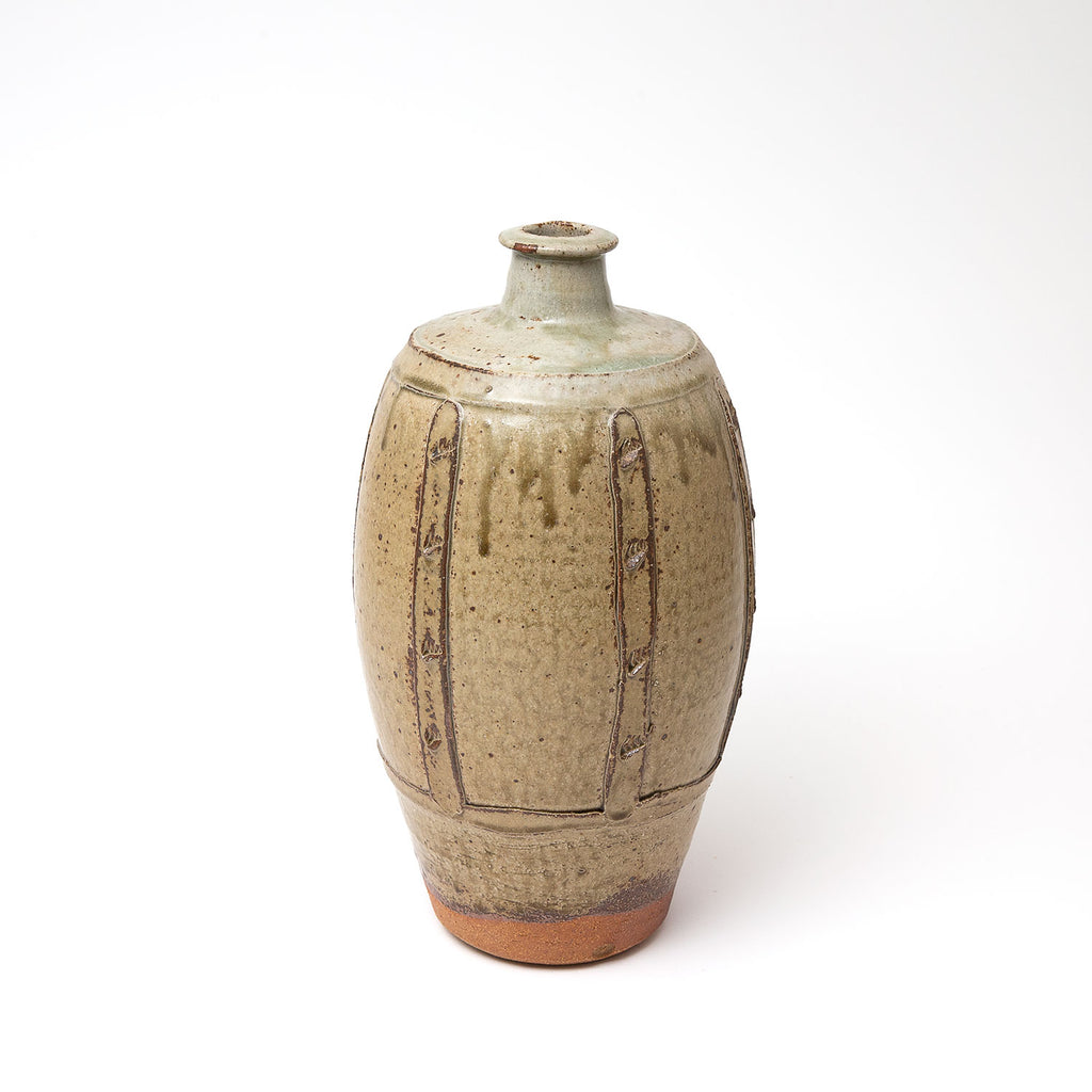 Phil Rogers was born in Newport, Gwent in 1951. He attended Newport and Swansea Colleges of Art and had originally intended to become a painter. While still at college in the early 1970s Rogers and a friend taught themselves to throw. Their only guidance came from Bernard Leach’s A Potter’s Book and their throwing practice came in the form of competitions to see who could produce the biggest pot.
