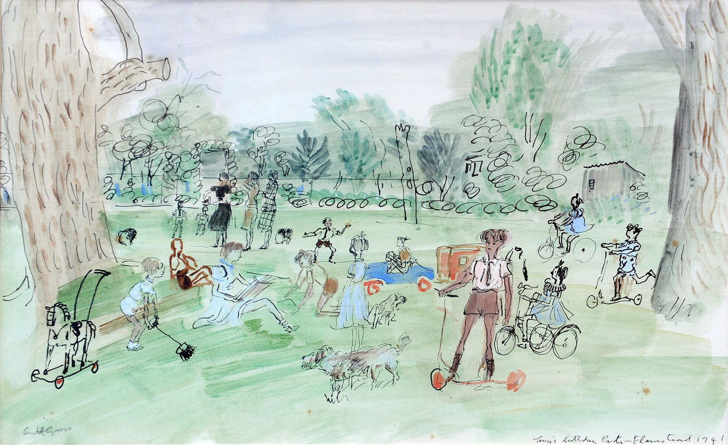This carefree scene of a child's birthday party is in stark contrast to the scenes Gross would have witnessed as a British war artist at home and overseas.