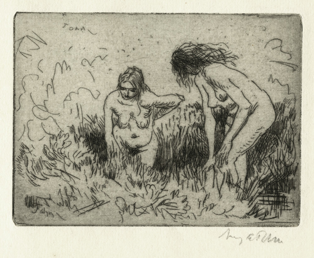 Marrying his mistress, John’s work was renewed. Well-received by critics, in 1914 he was elected President of the National Portrait Society and appointed as an official war artist in 1919. Success after the war continued: he was elected an R.A. in 1928, was awarded the Order of Merit in 1942, and in 1952 had his first autobiographical work Chiaroscuro published. John died at Fryern Court in 1961.