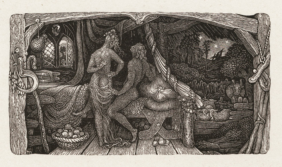Appropriately the last of Calvert’s visionary works is his chef d’oeuvre; it is that fragrant little wood engraving, ‘The Chamber Idyll’, made in 1831, without doubt one of the supreme achievements of the art.
