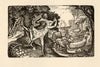 Calvert’s work after Blake’s death immediately matured, as if the loss of such an inspirational figure had spurred him on to greater heights. The period that followed from 1827 to 1831 is universally considered to have been Calvert’s pinnacle, comprising wood and copper engravings and lithographs all characterised by fine, dextrous lines depicting sylvan vistas - imagery redolent of both classical pastoral scenes and symbolic Christian parables.