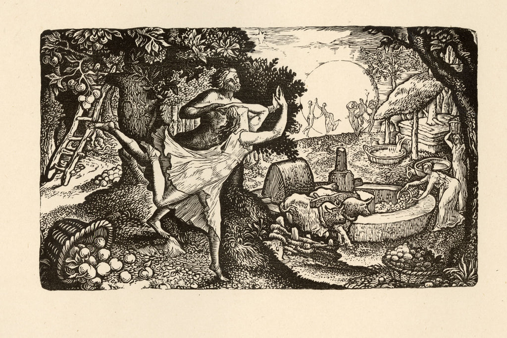 Time spent with the Ancients was, for Calvert, illuminating and inspirational, their meetings in Palmer’s cottage - ‘Rat Alley’, as it was affectionately known - involving discussions of poetry, printing technique and deeper spiritual musings. The elder Blake, whom Palmer described as a ‘prophet’ and a ‘man without a mask’, impressed upon Calvert and the group an ardent religious appreciation for Nature and the earth, as well as instructing the young artist in the process of wood-engraving and the visionary artistic style.