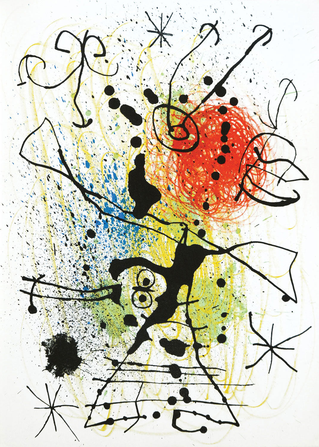 Drawing on his universe of signs and symbols, he was able to create a world populated by strange configurations in vivid colours. He made many prints throughout his career and in 1954 he was given the Venice Biennale print making prize. The Foundation Joan Miró was opened in 1975 overlooking Barcelona. He died in 1983.