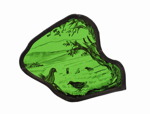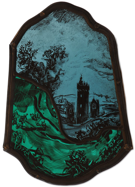 Signed stained glass.
