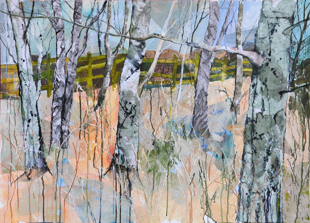 Jenny Grevatte is continually evolving and developing her ideas and methods. Recent themes include trees and woods, hedges, rooftops, huts , bookshelves, rock formations, sunflowers, artichokes, wild flowers and, her constant favourite, still life. Scale, format and composition are exciting challenges for her and recently she has been exploring the quality and mystery of changes of light in the landscape. A new and powerful theme is the moon, seen in all its varying moods and allowing Jenny to introduce a new palette of dark colours.