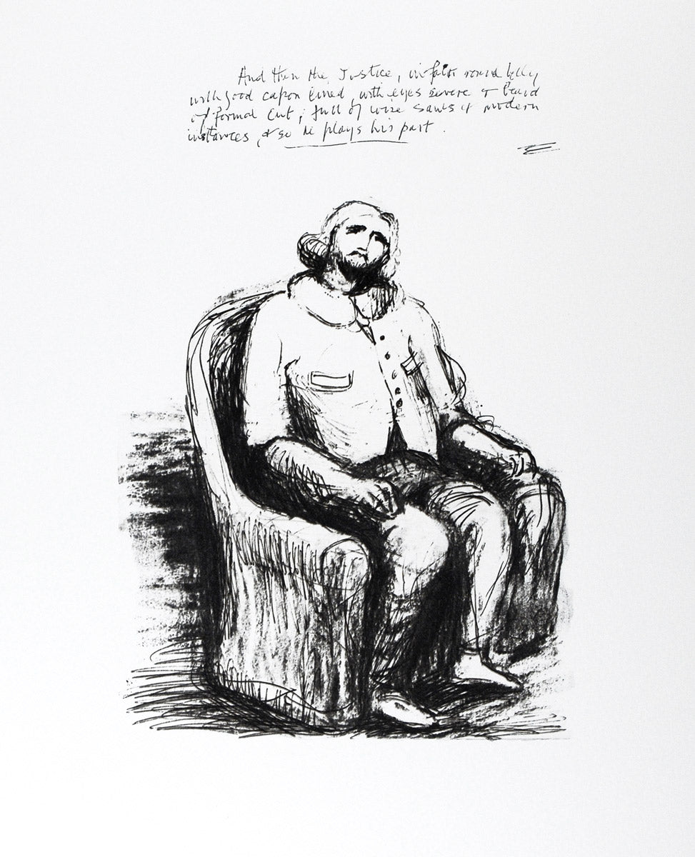 From the Seven Ages of Man Portfolio. Proof copy aside from the edition of 75. A letter of authenticity signed by Stanley Jones accompanies this print. And then, the lover, Sighing like furnace, with a woeful balad Made to his mistress' eyebrow.