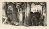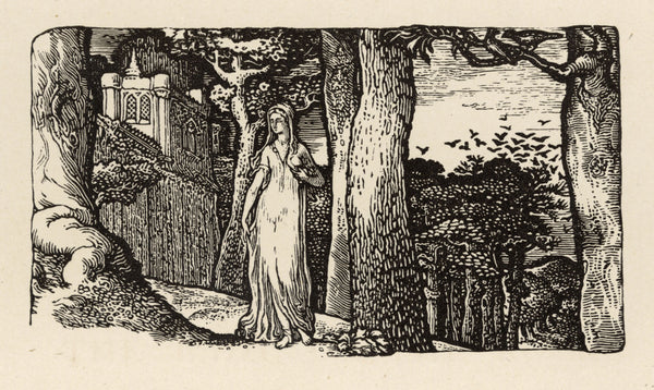 " 'The Lady with the Rooks’ is one of Calvert’s prettiest works. In it he leaves the timelessness of classicism and mysticism, and becomes mediaeval... A young woman, graceful and beautiful, flimsily clad, walks towards us. The time could be early morning or late evening in summer, for the sun is low in the sky, the atmosphere is quiet, and the breeze is still. If it were not for the existence of 'The Chamber Idyll ’I should place it as perhaps the most original and perfect of Calvert’s engravings." - Raymond Lister, Edward Calvert, 1962.