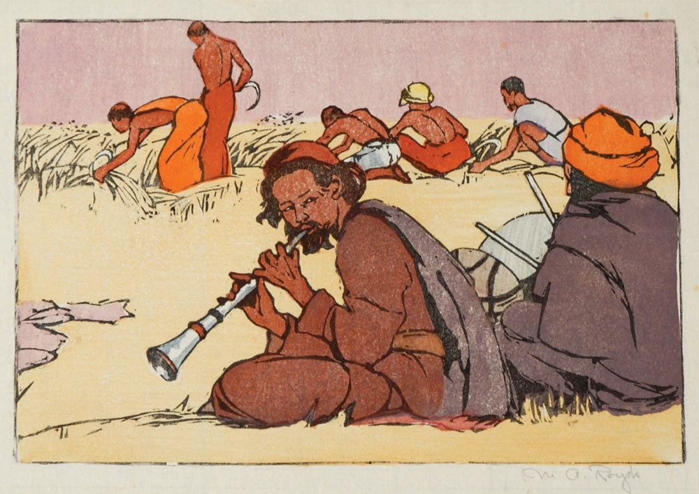 Royds married Lumsden in 1913, their honeymoon including travels to Bombay. They returned to India the following year and in 1916 the two of them journeyed through the Himalayas, painting as they went. Throughout the 1920s her prints, nearly always woodcuts, were often of Indian subjects based on images from her travels. Unable to afford pear woodblocks for her woodcuts, she made them instead from sixpenny breadboards from Woolworths. Royds died in Edinburgh, 1941.