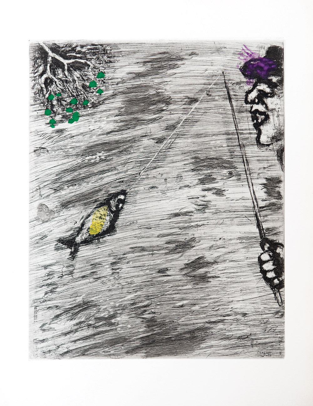 Returning to Paris in 1923 he met the art-dealer Vollard for whom he illustrated Gogol’s Dead Souls and the Fables of La Fontaine. Between 1941-47 he moved between occupied France and the USA, eventually settling near Nice. Chagall was a prolific artist, his work reminiscent of Jewish life, bible stories and of the folklore from his early years in Russia. He died in 1985.
