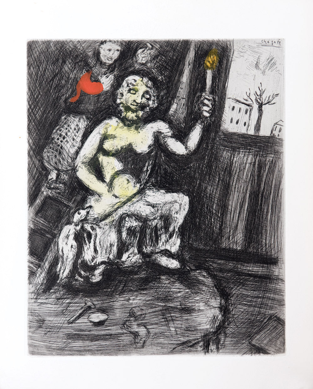 Returning to Paris in 1923 he met the art-dealer Vollard for whom he illustrated Gogol’s Dead Souls and the Fables of La Fontaine. Between 1941-47 he moved between occupied France and the USA, eventually settling near Nice. Chagall was a prolific artist, his work reminiscent of Jewish life, bible stories and of the folklore from his early years in Russia. He died in 1985.