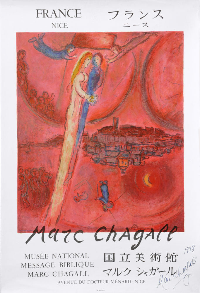 Signed. This is one of a number of posters which were signed and given by Chagall, to express his gratitude to the contributing members of the 'Society of Friends of the National Marc Chagall Biblical Message Museum, Nice'