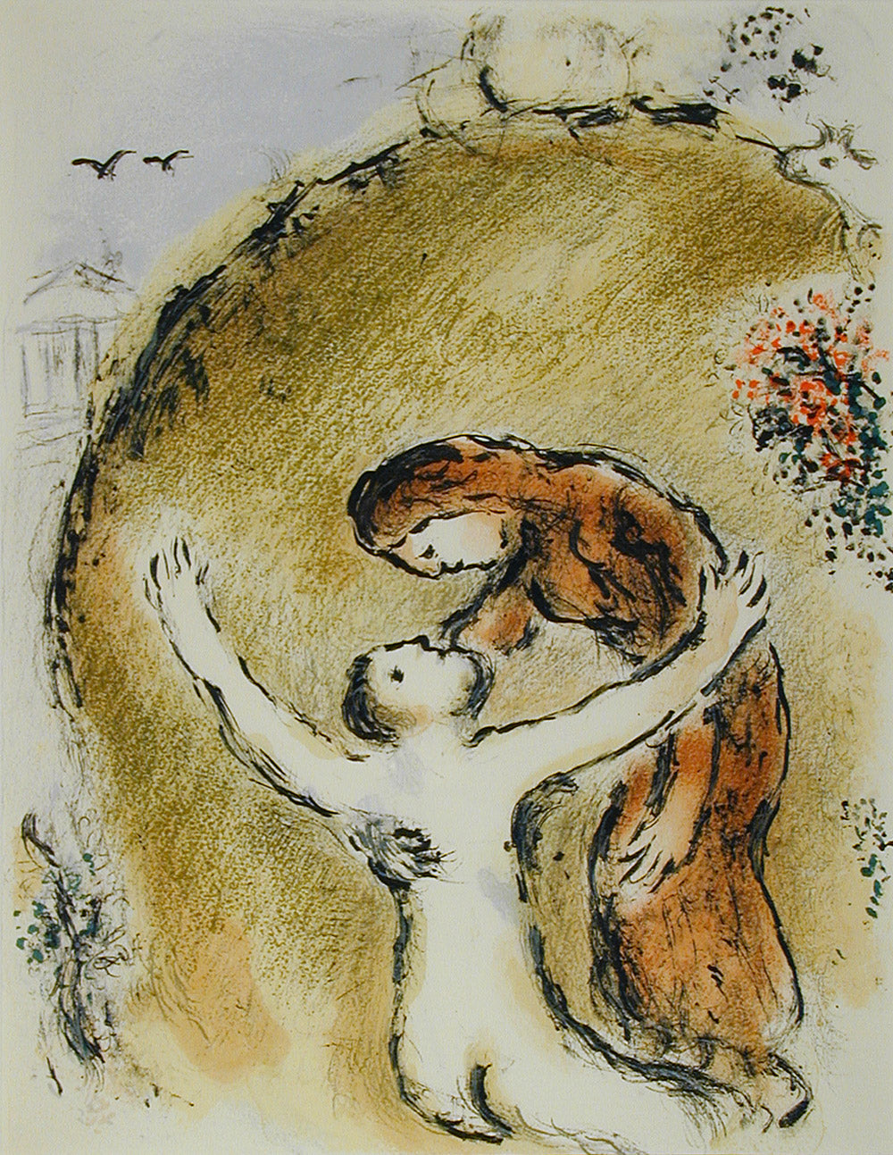 Returning to Paris in 1923 he met the art-dealer Vollard for whom he illustrated Gogol’s Dead Souls and the Fables of La Fontaine. Between 1941-47 he moved between occupied France and the USA, eventually settling near Nice. Chagall was a prolific artist, his work reminiscent of Jewish life, bible stories and of the folklore from his early years in Russia. He died in 1985.