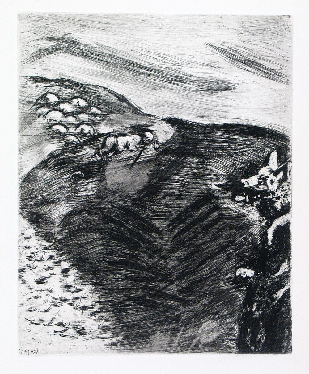 Returning to Paris in 1923 he met the art-dealer Vollard for whom he illustrated Gogol’s Dead Souls and the Fables of La Fontaine. Between 1941-47 he moved between occupied France and the USA, eventually settling near Nice. Chagall was a prolific artist, his work reminiscent of Jewish life, bible stories and of the folklore from his early years in Russia. He died in 1985.