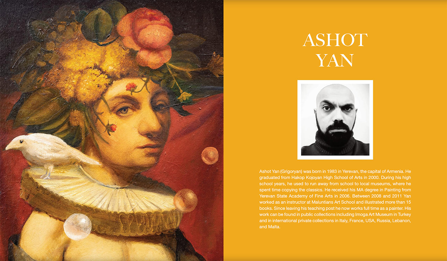 A beautiful 40 page catalogue illustrated with photographs of work from Three Armenian Painters, a 2019 Goldmark exhibition. Featuring oil paintings by Ashot Yan, Tigran Asatryan and Arthur Hovhannisyan. With essay by Baykar Demir, art historian and curator.