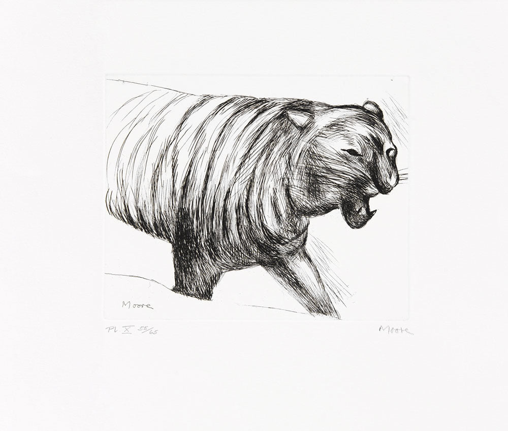 Signed etching, 1982. We rarely come across Moore's animal prints.